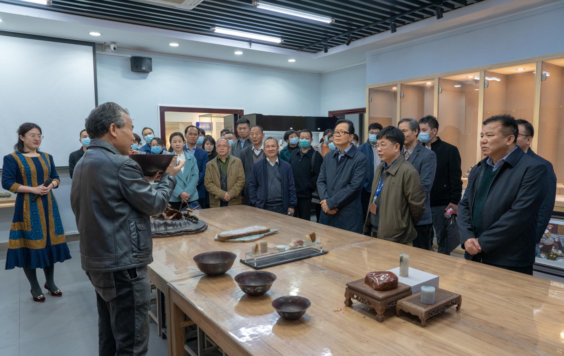 考察团参观大师工坊,李玟翰大师向考察团介绍师生创作的作品