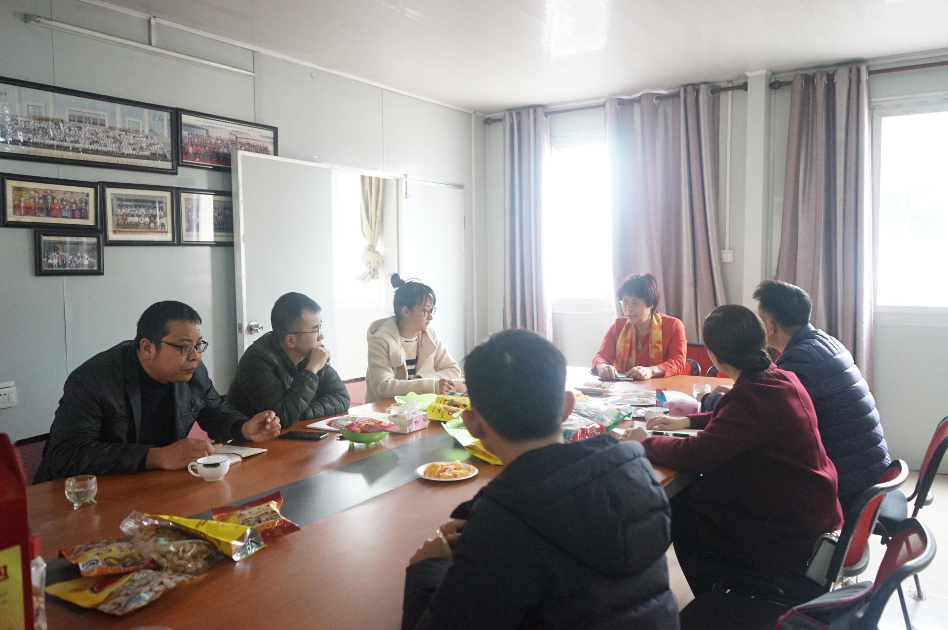 为了解企业需求、加强产学研合作交流,3月2日下午,南宁学院产学研处处长张艳雯、机质学院食品教研室主任程忠博士,广西科学院李秉正博士等一行8人到南宁市人人想食品有限公司进行调研,张艳雯处长等一行受到刘筱瑾董事长热情接待。