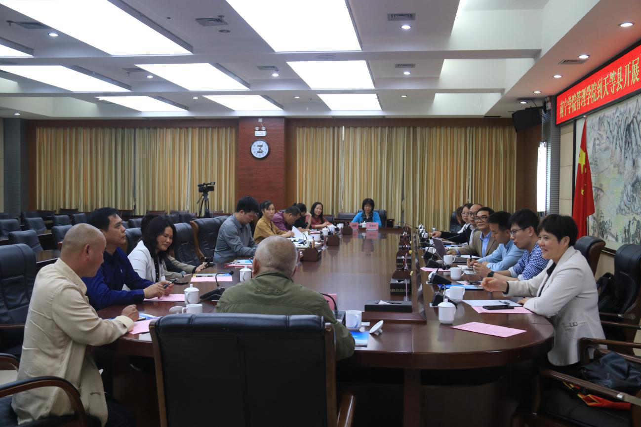 为做好桂商案例集,提升桂商研究院的科研水平及服务地方经济发展的能力。2021年4月20日上午,南宁学院桂商研究院一行8人在管理学院副院长曹会兵副教授带领下前往天等县开展“桂商精神进校园”主题调研活动。下午3点在天等县县政府会议室召开“桂商精神进校园”主题调研活动座谈会。