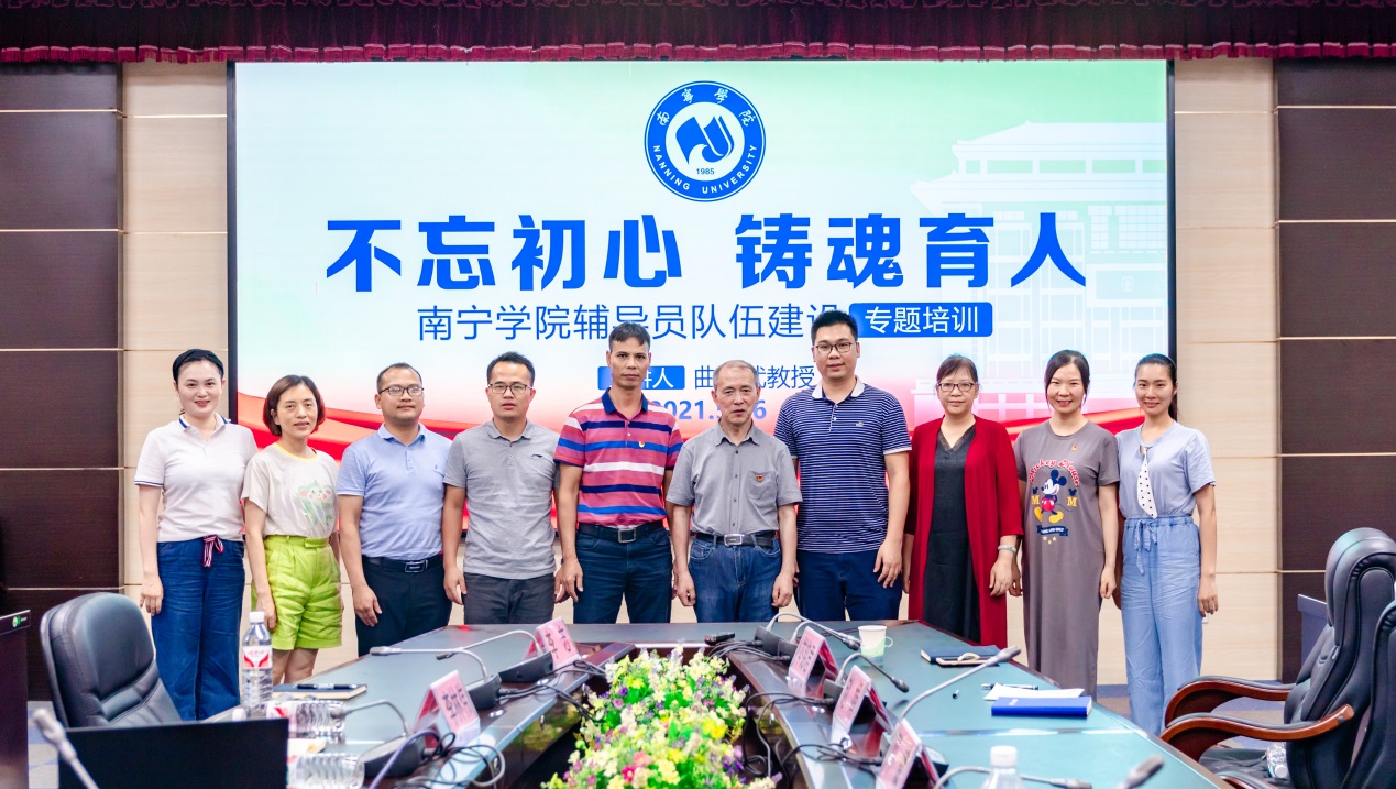 不忘立德树人初心、牢记铸魂育人使命。为深入贯彻落实全国教育大会精神、全国高校思想政治工作会议精神,着力提高辅导员的思想素质和专业能力,打造一支政治过硬、信仰坚定、专业化和职业化的辅导员队伍。5月16日19:30,南宁学院2021年第三期(第23期)辅导员活动日在活动中心拉开序幕,本次活动由机电与质量技术工程学院承办,邀请了大连海事大学时代楷模“厅级”辅导员曲建武教授担任本次培训的主讲人。学校党委副书记覃存民、学工处处长、各二级学院副书记以及全体学工系统成员参加了本次培训。
