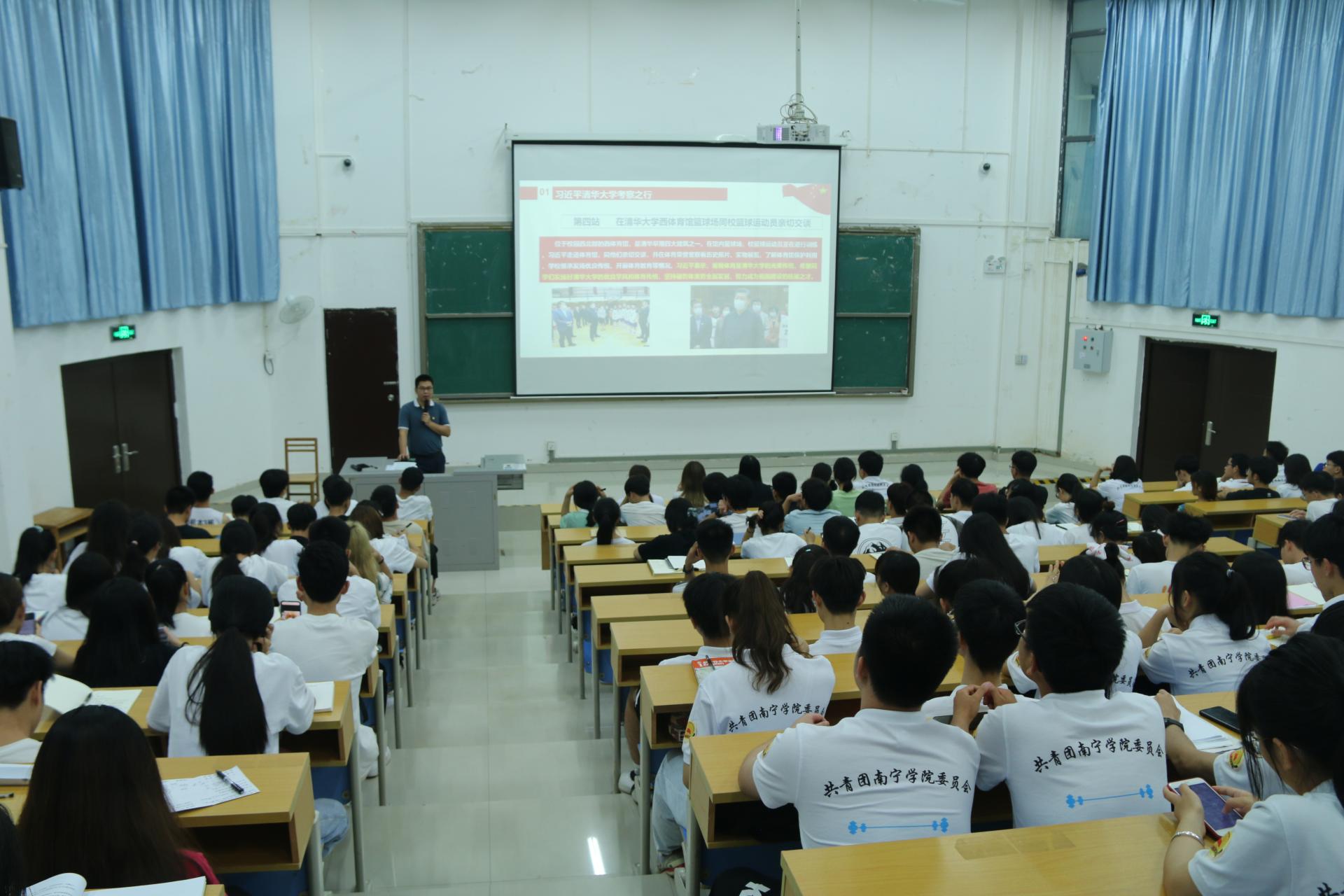 5月18日晚,共青团南宁学院委员会组织青年团员代表于敷文园A106开展学习会,学习总书记在清华大学考察时重要讲话精神,近200名学生团员代表参会,学习会由校团委书记李志主持。