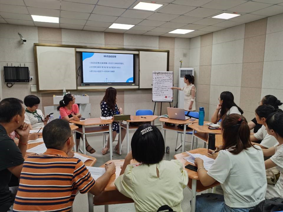 截至目前,本期“飞鹰计划”共进行了十个不同专题的在线课程培训,本次研讨会主要就教师们在前期课程培训过程中的理解、体会、总结、反思进行分享。研讨会上,组长周延老师首先介绍了研讨会的议程,林夏菲老师就参会教师们所提交的学习输出单进行了概括与总结。而后周延老师根据教师们对培训学习中提出的普遍性问题,带领本组成员进行了探讨。参会教师们各抒己见,畅所欲言,在研讨中碰撞出思想的火花,观点纷呈,研讨会现场气氛热烈,效果良好。最后,每位教师均对下一阶段的培训学习做了规划和展望。