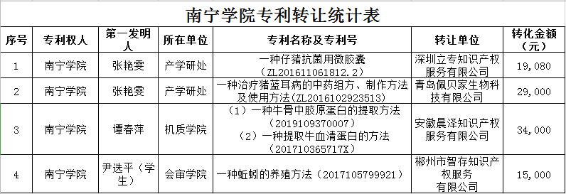 南宁学院坚持应用技术大学的办学定位,努力构建应用型科研体系,切实落实《教育部 国家知识产权局 科技部关于提升高等学校专利质量促进转化运用的若干意见》,完善制度机制、搭建成果转化平台,推动专利转让落地实施取得新成效。