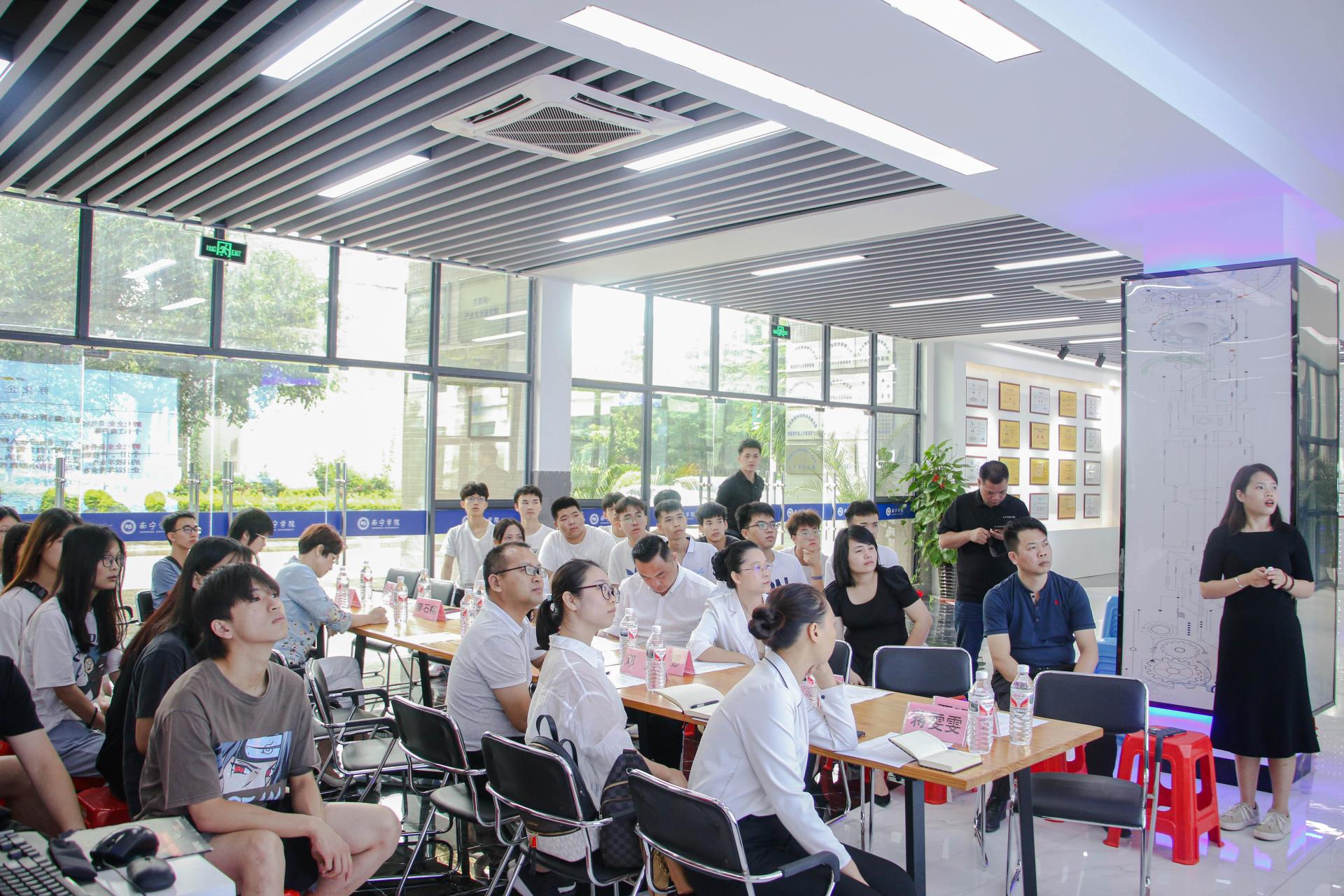 沙龙上,邓斌副院长首先对客人表示热烈的欢迎,并简要向来访客人介绍了学校、学院的基本情况,表达了希望依托大学生就业创业咨询服务工作室,聚合包括广西智慧城市研究会在内的各方资源,搭建校企、校社沟通交流平台,为我院学生就业创业咨询服务全面赋能。会上,研究会李娜会长就赋能我院毕业生就业创业的思路做了总体的介绍,并表示将依托研究会的政策、平台,聚合研究会400余家会员企业的资源,全面支持和赋能大学生就业创业。随后,研究会会员单位企业代表广西深研孵化器创业有限公司市场总监李炫毓、思朗智能家居总经理廖永达、广西军智汇科技服务有限公司总经理韦力,分别从创业政策扶持、创业项目支持和就业岗位提供等向同学们做了全方位的介绍。会上,相关负责人还就大学生就业、创业、社会实践等问题与学生进行了互动交流。