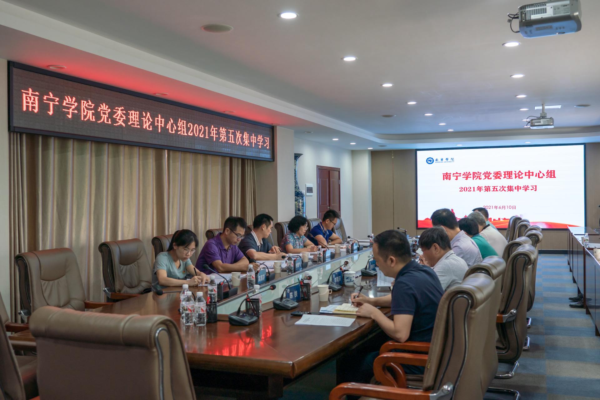 刘彪书记作党史学习教育开展情况汇报。党史学习教育启动以来,南宁学院党委按照中央、自治区党委和自治区党委教育工委的部署要求,紧紧围绕学习教育目标和民办高校实际,统一思想,提高认识,周密部署,认真推动学习教育走实走深。在党史学习教育总体开展方面,一是抓统筹规划,切实履行党史学习教育主体责任;二是抓面上推动,促进党史学习教育全校覆盖;三是抓宣传引导,努力营造学习教育良好氛围。在落实中央规定动作和广西、南宁自选动作方面:聚焦学深悟透,开展专题学习;开展教育宣讲,加强政治引领;用好红色资源,开展主题实践;关注师生需求,落实为民宗旨;创新活动形式,做好自选动作。在党史学习教育开展过程中,学校结合高校实际,充分利用现有资源,既做好“规定动作”,又紧密结合教育教学工作实际,精心设计创立学校自己的特色亮点,一是摄制“传承四史之光·献礼建党百年”系列主题微电影和微党课;二是利用校内英雄精神传出基地举办“建党百年,英雄精神代代传”活动。
