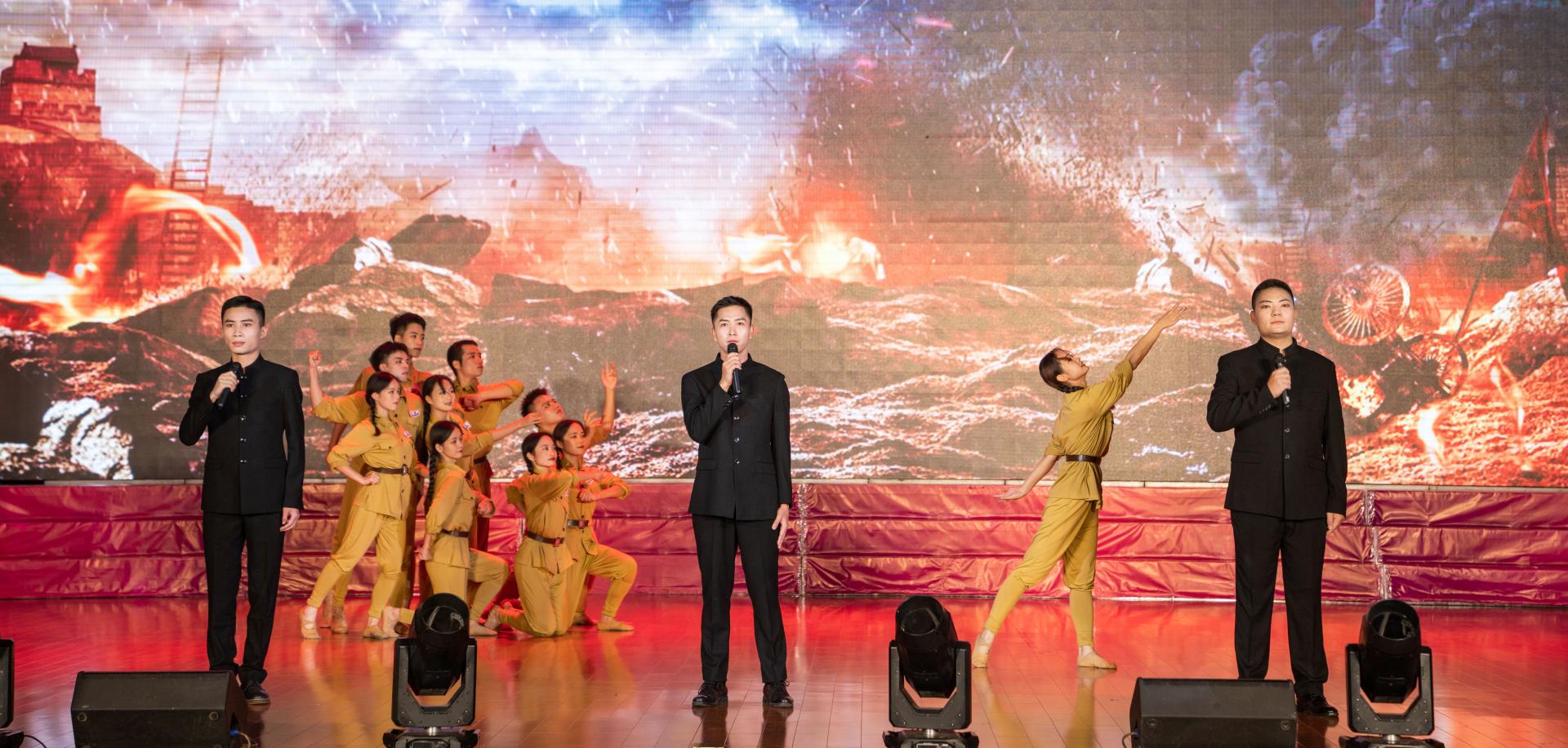 晚会以创新艺术党课的形式回顾党的百年历程,分为《红船启航》《旭日东升》《改革春潮》《逐梦复兴》四个篇章,通过歌舞演绎、诗歌朗诵、情景再现等形式,结合王静静、董艳、韦胜强、李隽宜、郭文昕等老师的深情讲述,为全体师生呈现了一堂既有思想深度又有艺术厚度的生动党课。