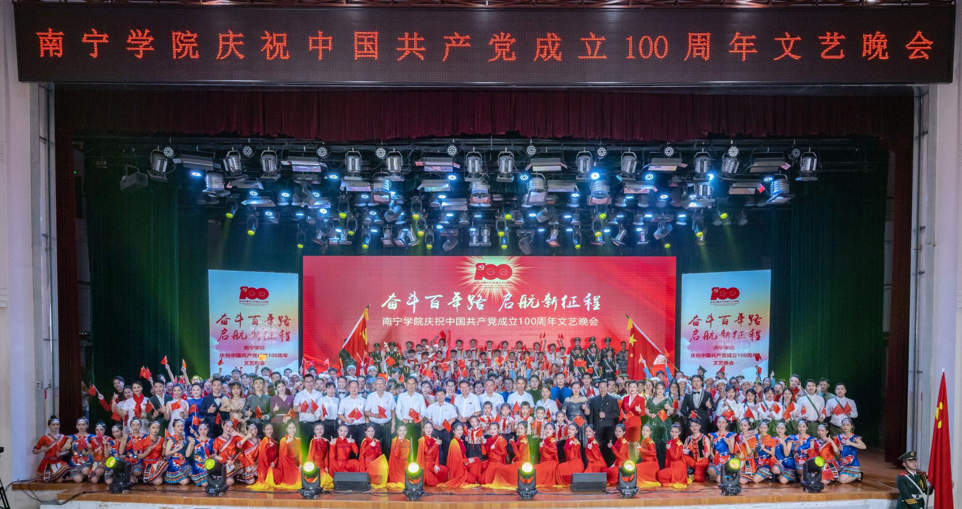 百年大党恰是风华正茂,英雄人民必将再创辉煌。晚会在全体师生党员合唱《没有共产党就没有新中国》中落下帷幕。激昂高亢的歌声表达了南院师生对伟大党的深情告白,也传递出全体师生坚定中国共产党历史自信,坚定中国人民和中华民族未来自信,以昂扬姿态奋力开启全面建设社会主义现代化国家新征程的使命和担当。(党政办、马克思主义学院供稿 文/黄鼎芹、董艳 图/陈俊毅、南宁学院通讯社)