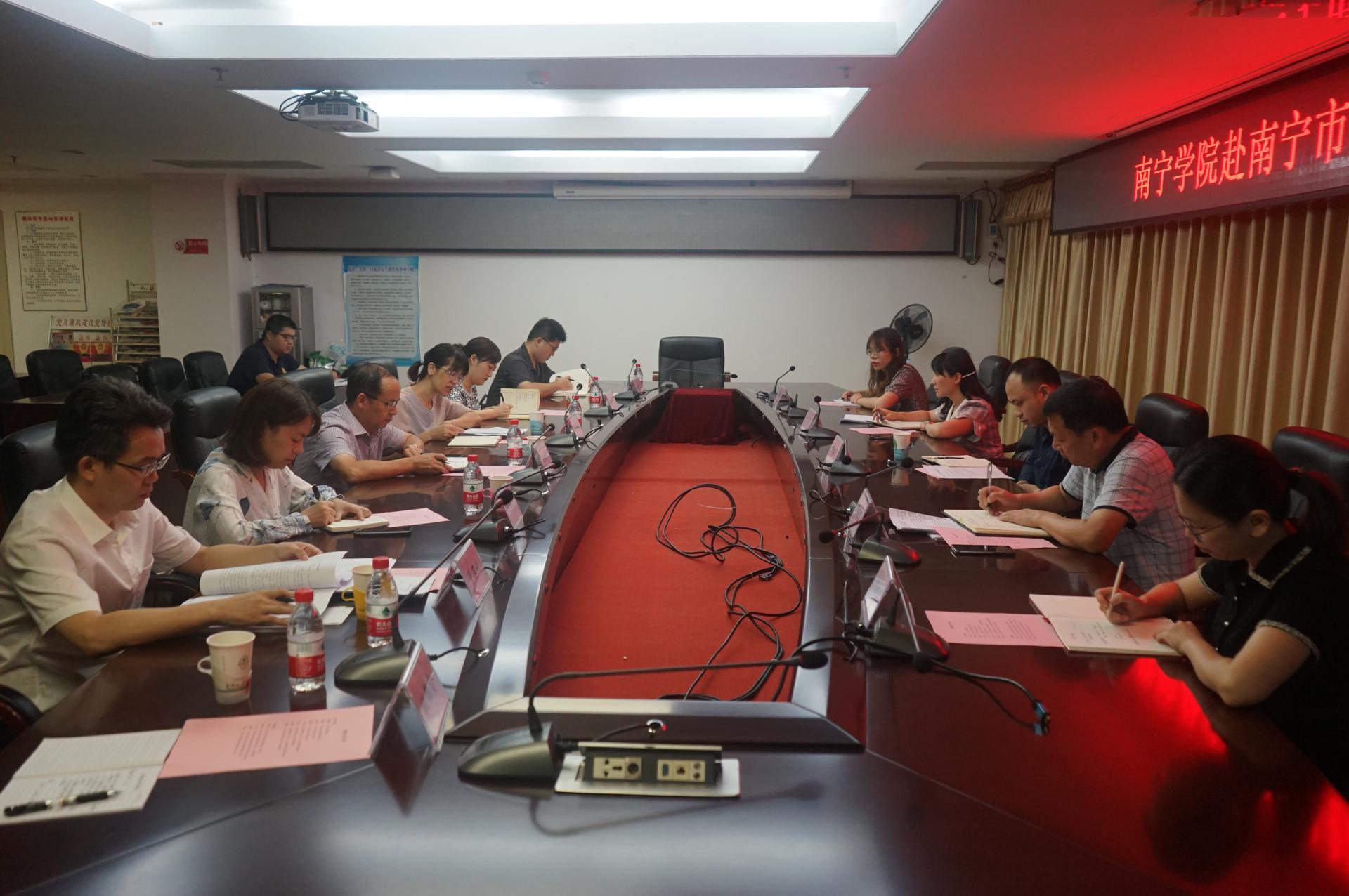 为加强与南宁市科技局的交流合作,2021年6月30日,我校副校长陈雄章教授带产学研处处长张艳雯、发展规划处处长覃凤彩、人事处处长赵田英、信息工程学院副院长管卫利等一行7人赴南宁市科技局考察调研,南宁市科技局党组成员、副局长霍炳至,党组成员、四级调研员游国贤,成果科科长兼办公室负责人闫慧,引智科四级主任科员陈祝慧等参加了调研座谈会,会议由霍炳至副局长主持。