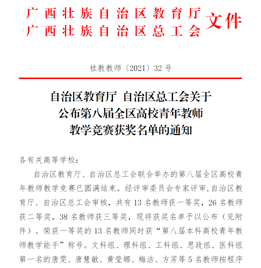 【喜讯】南宁学院教师在第八届全区高校青年教师教学竞赛中荣获佳绩