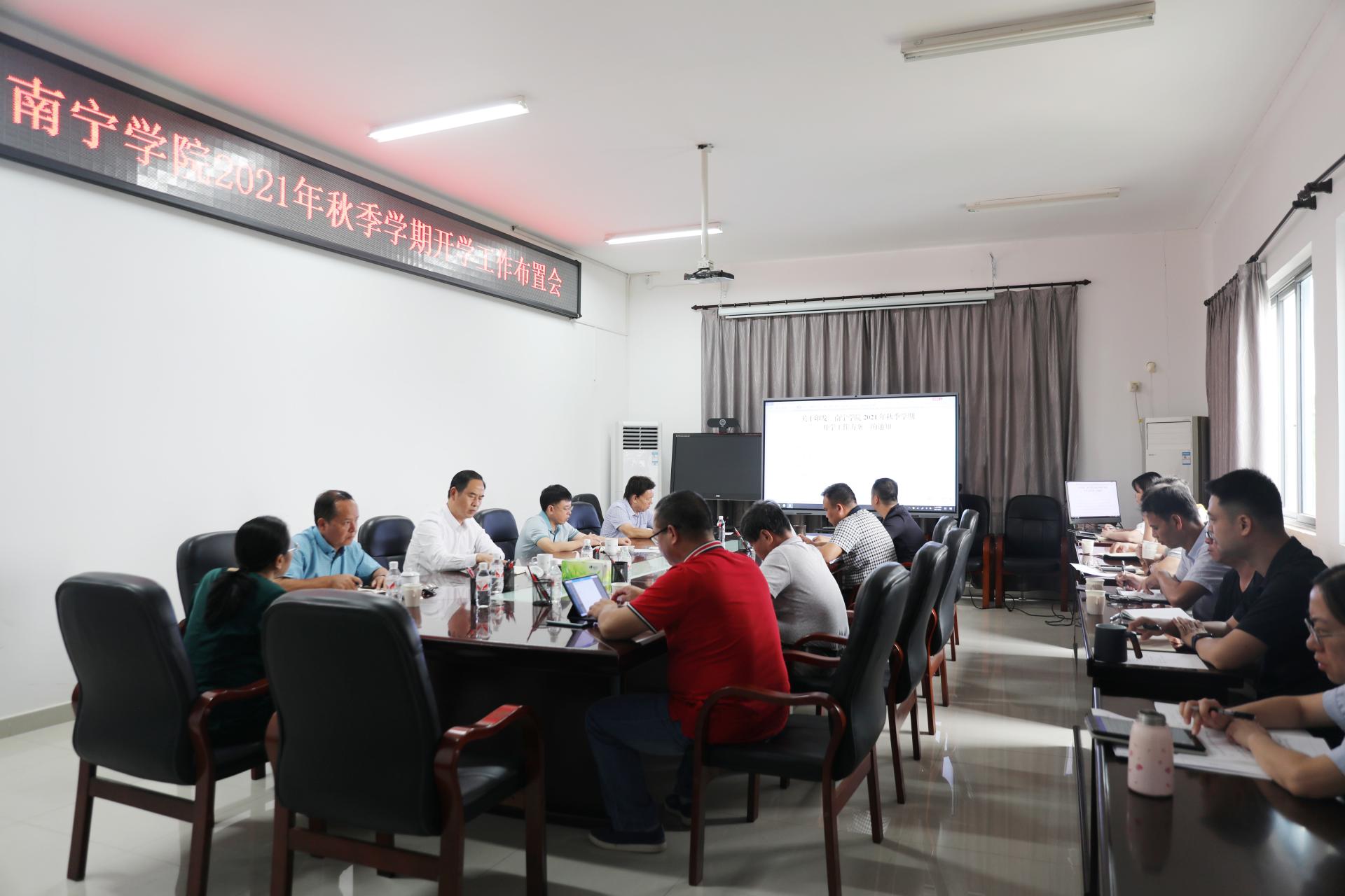 92日上午,学校在行政楼518会议室召开2021年秋季学期开学工作布置会。学校党委书记刘彪、校长李栋学,党委副书记、纪委书记覃存民,副校长陈雄章、李陶深、龚击,财务总监及党政办、教务处、学工处、招生就业办公室、后勤基建处、网络信息中心负责人参加会议。会议由李栋学校长主持。