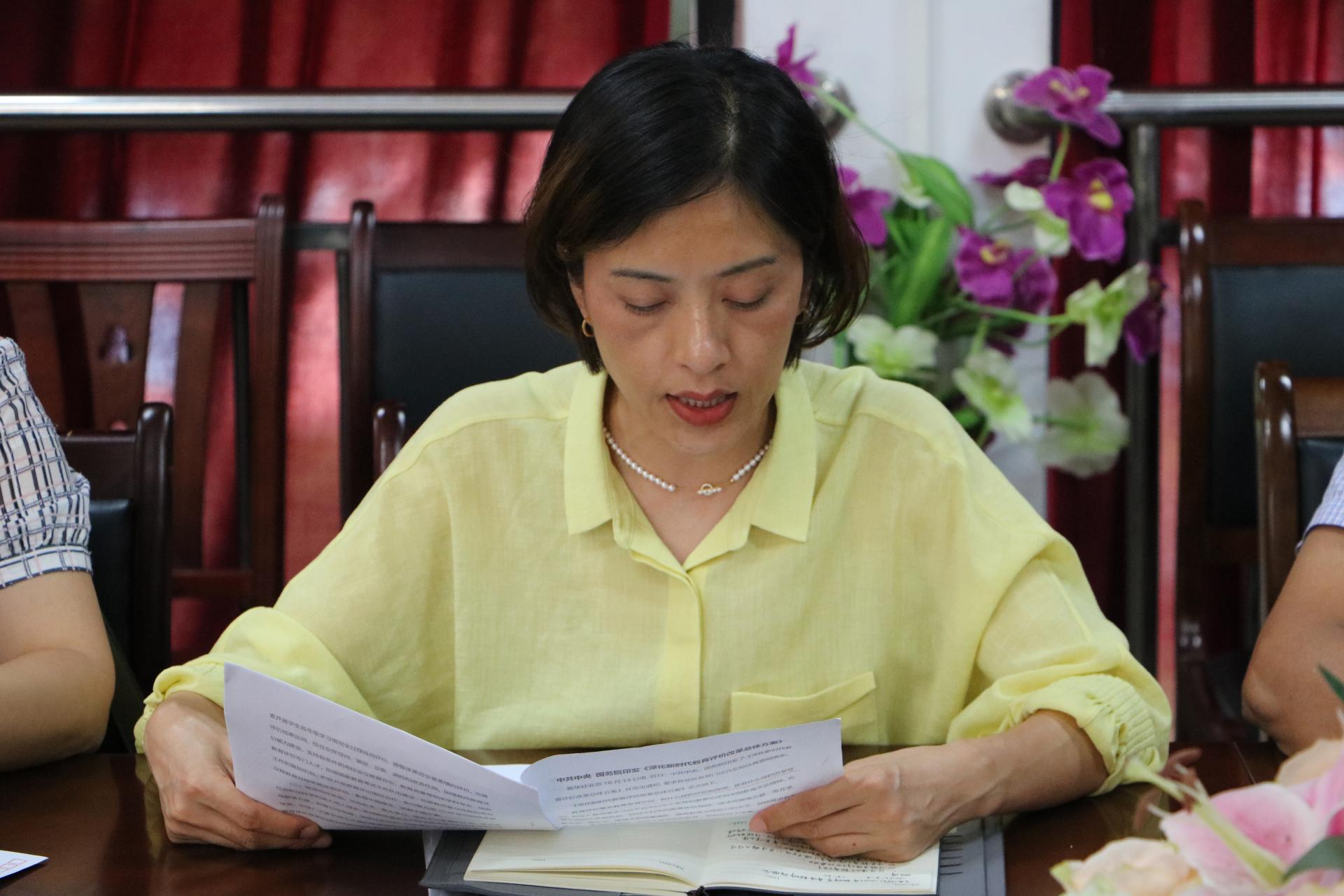 交通学院党总支副书记卢柳青组织大家学习教育相关文件