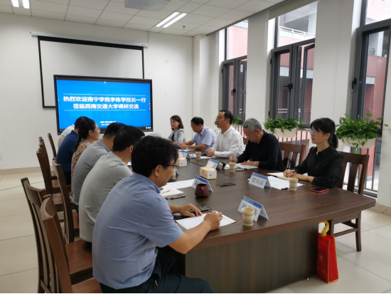 9月29日上午,李栋学校长带领广西中国—东盟综合交通国际联合重点实验室、交通学院、发展规划处、人事处部门负责人一行5人前往西南交通大学学习交流,得到了西南交通大学朱健梅副校长的热情接待,双方举行座谈交流。