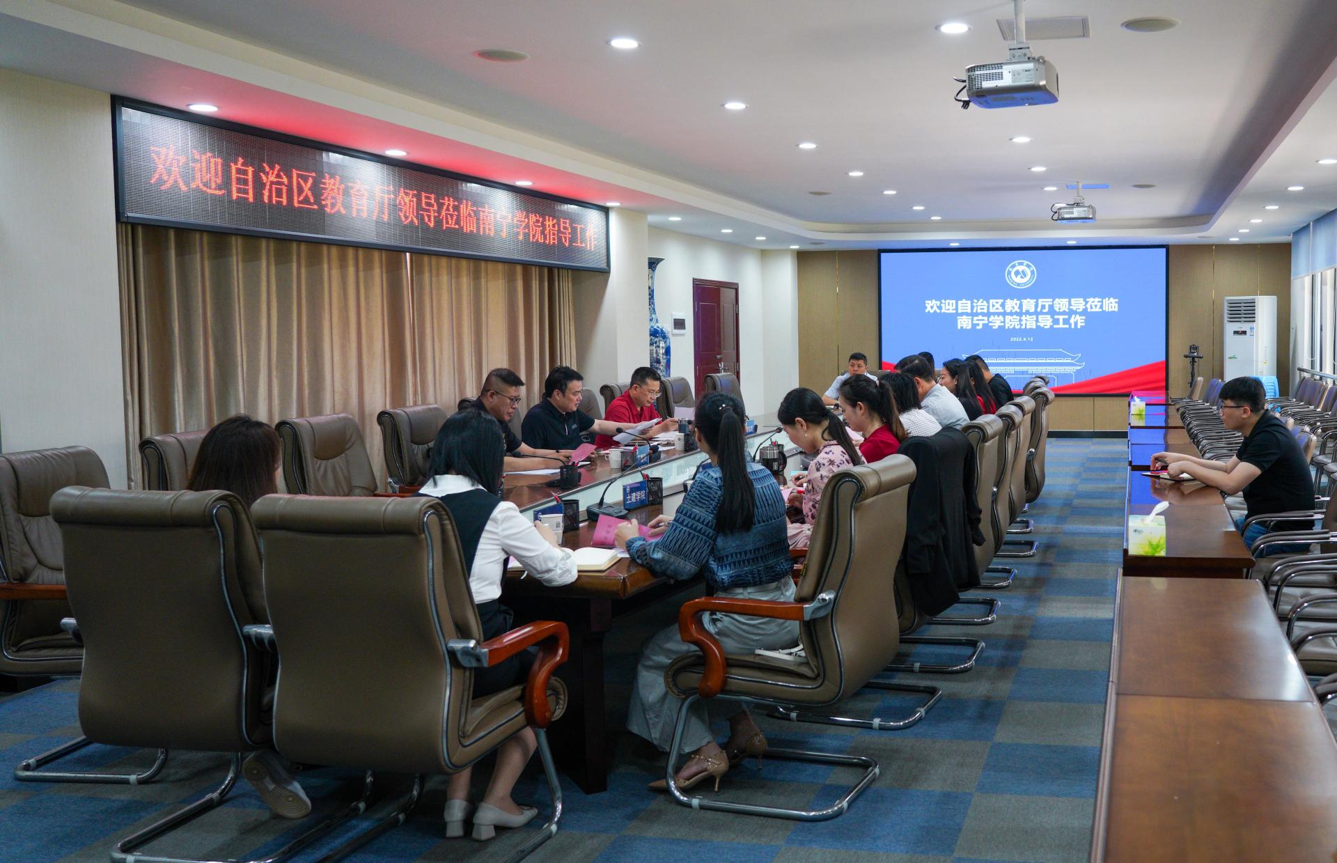 4月12日上午,自治区教育厅广西高校毕业生就业创业指导中心主任蒋瀚洲、学生处调研员胡兆阳、广西毕业生就业促进会秘书长丁振轩莅临南宁学院开展座谈调研。学校校长李栋学,党委副书记、纪委书记覃存民,学工处处长王静静,副处长韦相晓及各二级学院分管学生工作副院长陪同调研。李栋学校长主持调研会议。