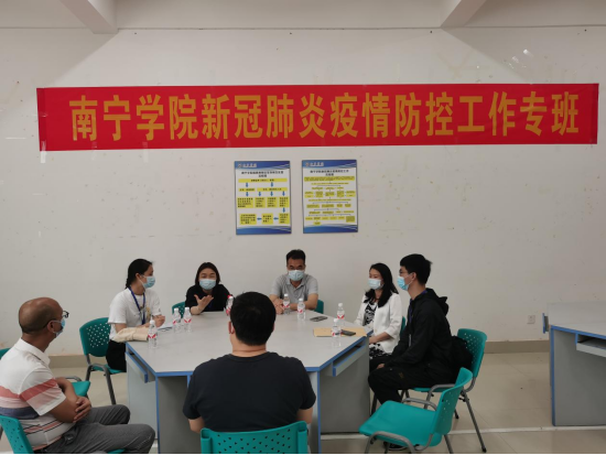 根据南宁市新冠肺炎疫情防控指挥部关于各单位下沉到一线的疫情防控工作部署,南宁市教育局、邕宁区教育局等部门组成检查组于2022年4月14日到我校检查疫情防控工作,我校疫情防控专班全体成员负责接待。
