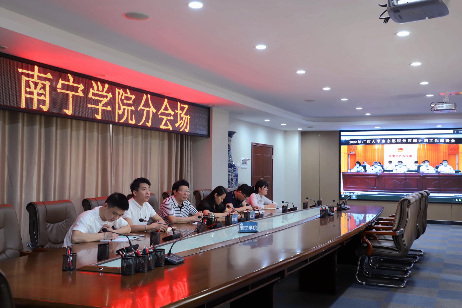 4月26日上午,自治区教育厅召开了2022年广西大学生志愿服务西部计划工作部署网络视频会议,南宁学院作为高校代表参加了此次会议。学校党委副书记、纪委书记覃存民,学生工作处处长王静静,就业科及团委有关负责同志参会。