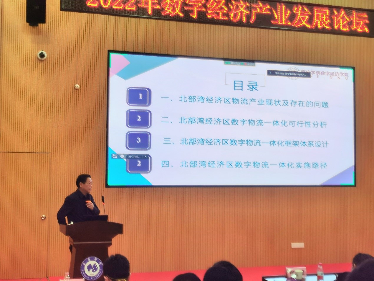 南宁学院数字经济学院院长秦建文教授作《北部湾经济区数字物流一体化探索》主题发言