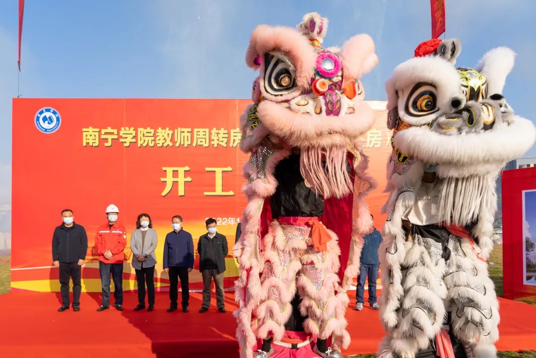 舞狮表演庆祝南宁学院教师周转房项目正式开工