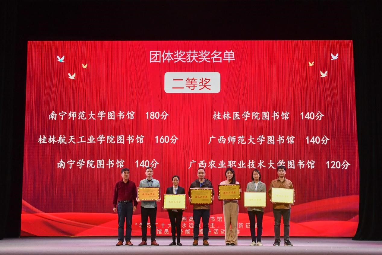 3月17日,广西高校图书馆“学习二十大,永远跟党走,奋进新征程”馆员业务能力提升活动决赛在广西民族大学图书馆落下帷幕,经过激烈角逐,南宁学院图书馆参赛队荣获全区一等奖1项,二等奖1项,三等奖2项的好成绩。