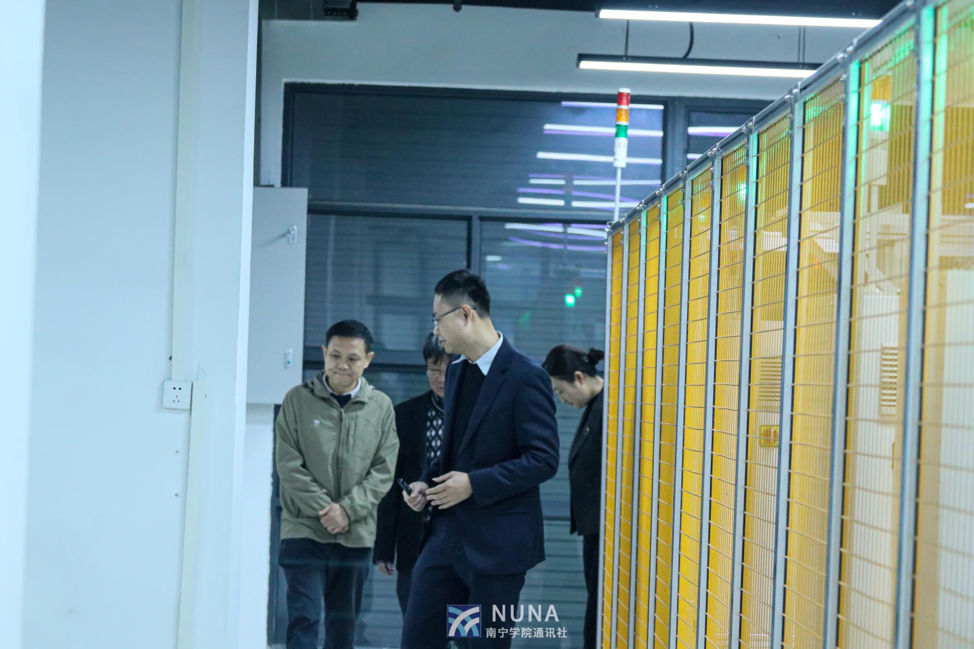 启动会结束后,李陶深副校长和张艳雯处长陪同南宁市市场监督管理局四级调研员臧伟洲参观了智能制造研创中心、广西中国-东盟综合交通国际联合重点实验室和教育部ICT产教融合创新基地,臧伟洲调研员对学校取得的成绩表示赞许和肯定。