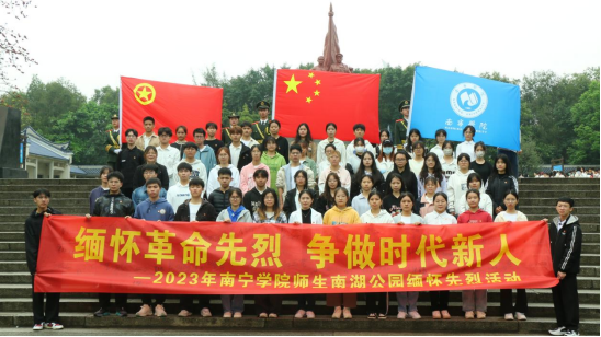 清明悼念寄哀思,缅怀英烈寄英魂。为深入学习贯彻习近平总书记在党的二十大上的重要讲话精神,加强党史学习教育,铭记革命英烈,弘扬爱国主义精神,4月2日上午,共青团南宁学院委员会组织校团委教师代表、校级团属组织代表及第二期“青马工程”培训班学员80余人前往南湖公园李明瑞、韦拔群烈士碑园,举行“缅怀革命先烈 争做时代新人”清明缅怀革命先烈主题活动。