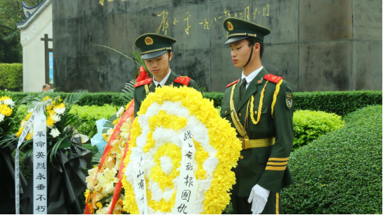 南宁学院国旗护卫队为烈士敬献花圈