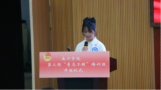 南宁学院首期青马班培训班结业学员代表、广西区青马班学员罗海娇发言