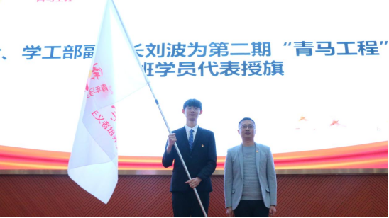 学工部副部长刘波将青马班班旗授予了第二期青马班培训班学员代表