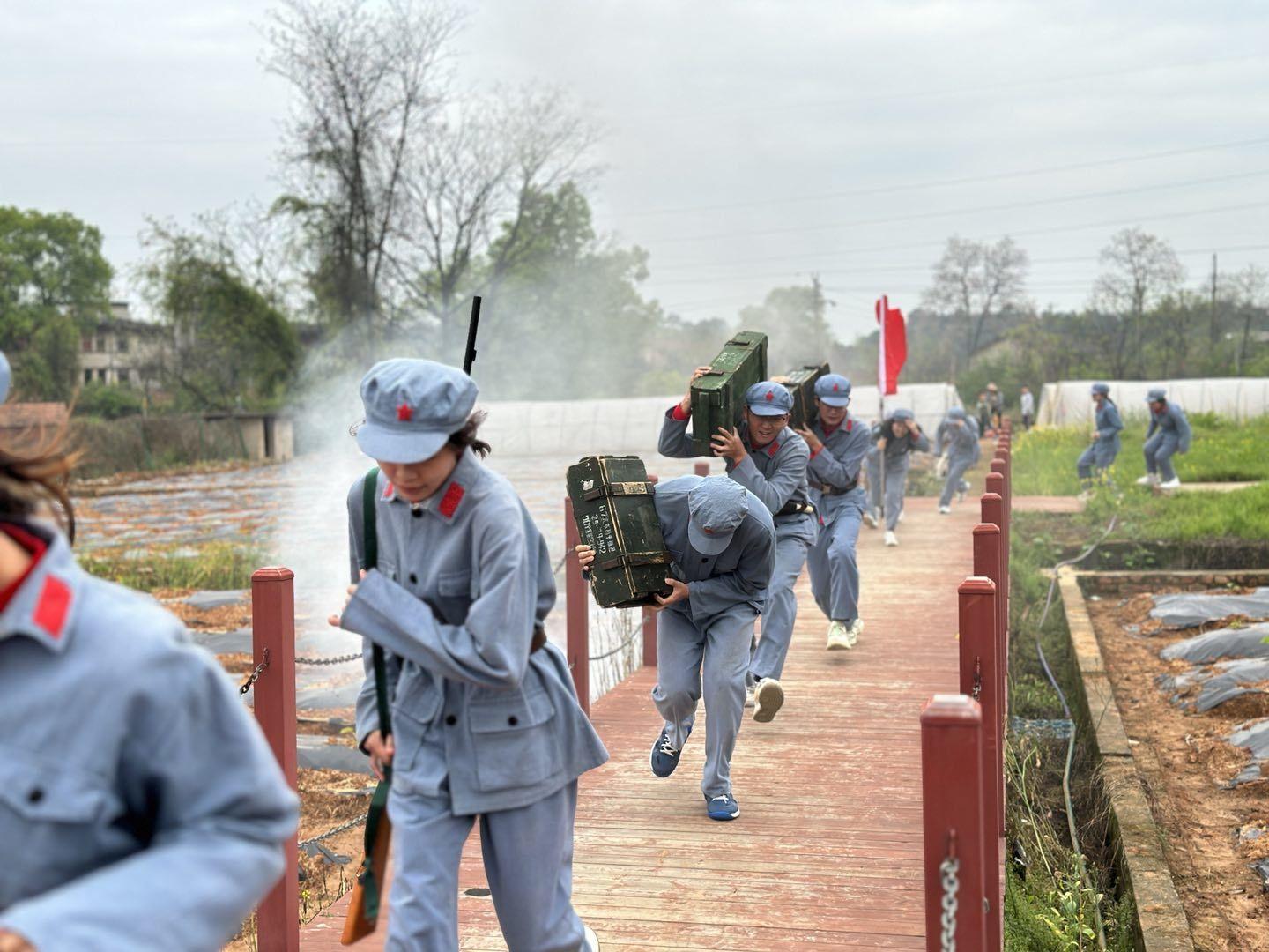 在研学活动开班仪式上,学工处副处长韦相晓做了动员讲话,她说开展本次研学活动目的是紧紧围绕学习宣传党的二十大精神,以党史学习教育常态化为抓手,以丰富生动的研学生活体验激发青年学生学习党史的热情、通过学习知党情、感党恩、听党话、跟党走,磨炼吃苦耐劳的意志,激发学生立志成才、报效祖国的热情。她希望同学们树立正确的世界观、人生观和价值观,养成自立自强、知恩感恩、勇于担当和吃苦耐劳的良好品质,为实现中国梦而坚持不懈奋力前行。开班仪式后全州县委党校唐建平老师给师生们作《湘江战役的历史地位和时代价值》专题讲座,唐老师用渊博的历史知识和风趣幽默的语言给师生们介绍了湘江战役过程和历史地位以及对时代的影响,在座师生受益匪浅。随后全体师生参加红军营拓展活动,开展强渡湘江、碉堡防敌、团队拓展等,同学们亲身感受军营生活,磨炼吃苦耐劳意志。其次参观全州县乡村振兴点——毛竹山村,了解村民生活现状、经济来源以及乡村振兴的新举措。接着重走湘桂古道,重温红军不畏艰难,英勇顽强的长征精神。最后参观红军长征湘江战役纪念馆,通过现场教学,师生们深切感受到湘江战役的“勇于胜利、勇于突破、勇于牺牲”战役精神,激励师生们踏寻革命先辈的足迹,追寻他们的精神,继续努力奋斗。