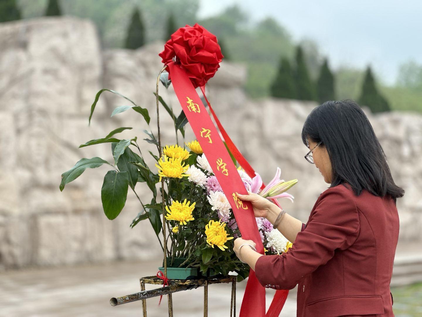学工处韦相晓副处长整理敬献花篮缎带