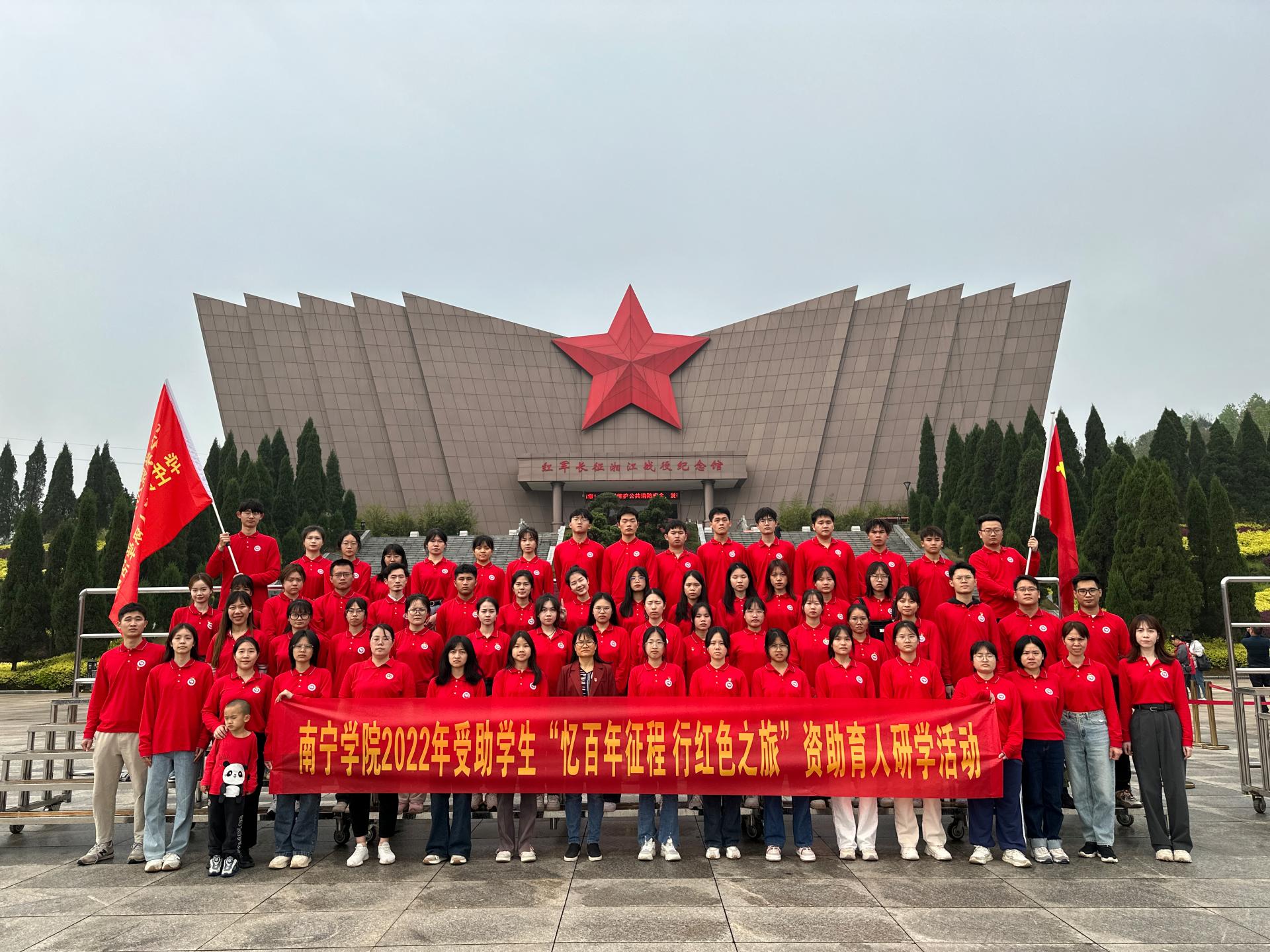 为进一步激发青年一代学生坚定理想信念,帮助受助学生拓展视野、提升素养,3月31日一4月2日,由学工处副处长韦相晓、资助科科长陈金燕带队,学校受助学生和带队老师共63人到广西全州县开展为其3天的2022年“忆百年征程 行红色之旅”资助育人研学活动。
