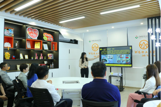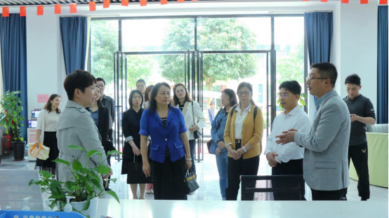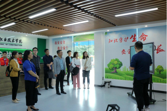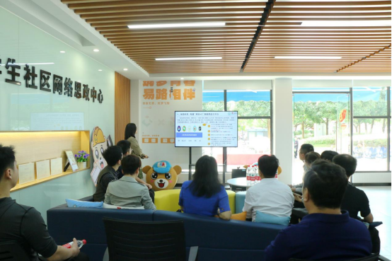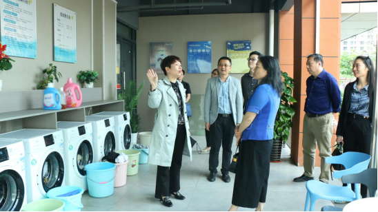 在广西建设职业技术学院副校长伍耿清的带领下,韦副书记一行16人前往“一站式”服务中心、智慧洗衣房、各学生公寓党建工作室、学生社区网络思政中心、安全协作中心、瑜伽馆、健身吧、“衣”见倾心生活馆、创意创业集市、知行工作室、红星工作室、扬帆工作室、“职”为你工作室、茶艺传习基地、送水中心等地进行了实地考察,听取负责老师分享建设经验。双方围绕一站式服务中心、辅导员队伍、党建工作建设等内容进行探讨交流。考察后在1教学楼1楼报告厅开展了座谈会,就参观过程中的感悟及疑惑进行了更深入的探讨。