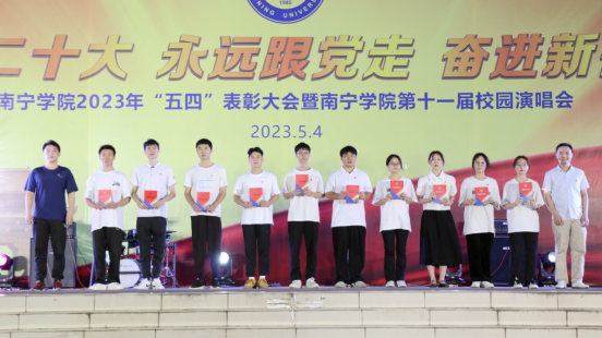 2023年是全面贯彻落实党的二十大精神的开局之年,此次“五四”表彰大会暨第十一届校园演唱会,旨在表彰先进,进一步将五四精神深化在同学们的心中,引导青年积极进取,奋发向上,引领青年充分发挥先进模范作用,带动更多的集体和个人,努力追求和书写新时代南宁学院的新篇章。(学生工作处供稿)