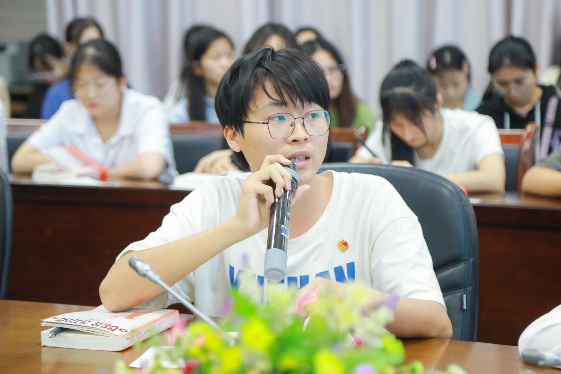 活动中,陈副校长着重介绍了《红星照耀中国》的出版背景,通过背景性的知识解读,引导在场师生更好地理解、读懂、读透这本书,感受“红星照耀中国”,甚至还照耀世界的精神冲击,他就7个问题与在场的读者共同探讨和分享:斯诺访问时期(1936年6月-10月)的陕北苏区处于怎样的生存状态?斯诺是一个人独自奔向陕北苏区吗?《红星照耀中国》记录的场景是延安吗?斯诺采访过红军总司令朱德吗?毛泽东戴红军帽的著名照片是怎么来的?世界如何知道毛泽东还是诗人?《红星照耀中国》产生了哪些重要的影响?现场学生围绕问题展开思考,并踊跃发表了自己的看法。在交流中,陈副校长就同学们的看法进行了点评分析,同时就书中关键性文字、图片跟读者一一解读,并分享了一些容易被忽略的历史事实以及自己的观点,希望同学们认真研读这本书,研读中国共产党在陕北苏区的这段艰难的历史,更好地理解中国共产党为什么“能”。