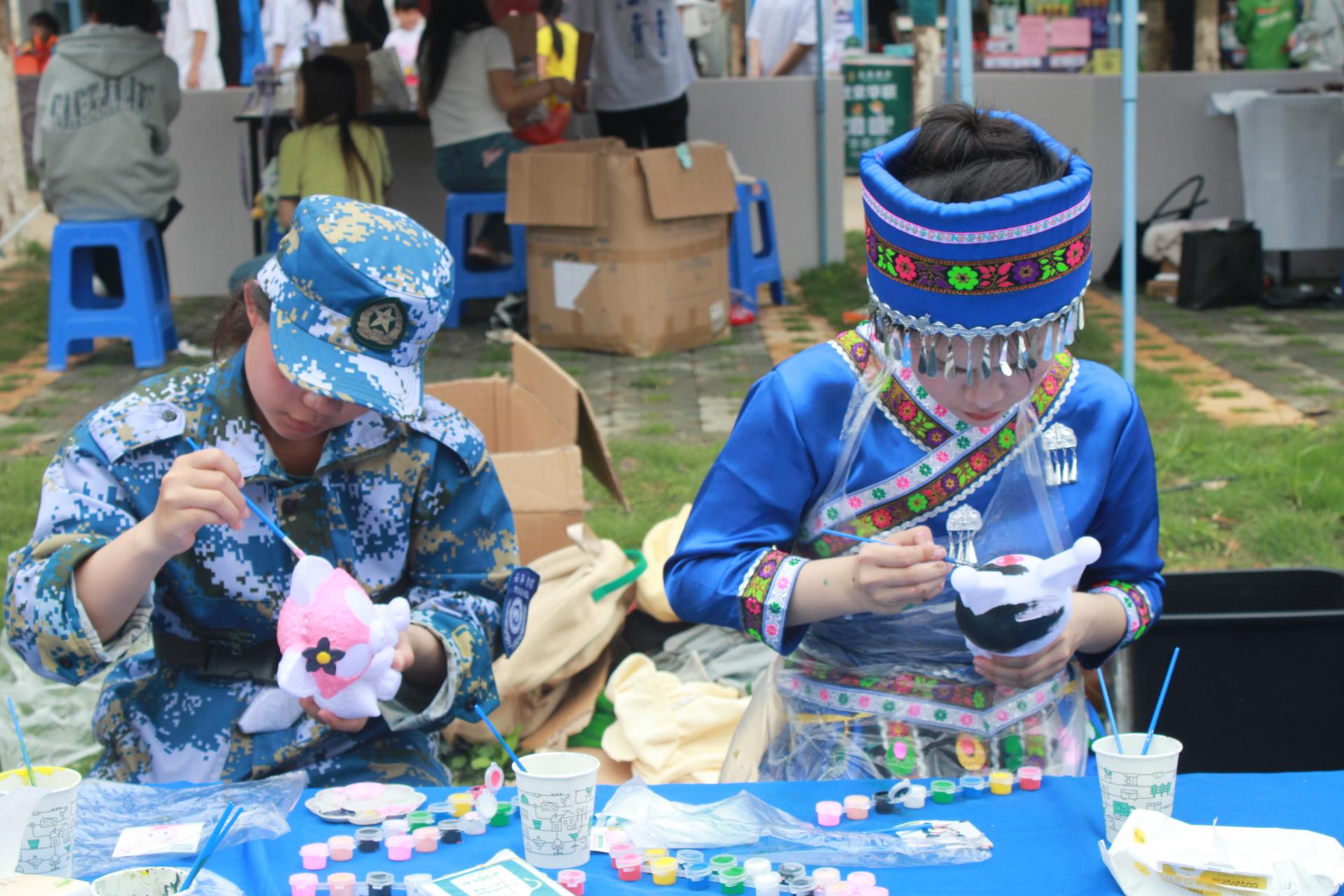 活动以“民族团结心相连,中华民族一家亲”为主题,分铸牢中华民族共同体意识教育,民俗趣味体验活动,体验创业成长,共赴美好“食”光、品特色美食,班级“1+1”创意市集活动,“泡沫之夏”嘉年华,筑巢引凤、携手企业合作新引擎等7个活动内容。在活动现场,师生们积极参与民族意识、民族政策和民族风俗理论宣讲,增强民族团结信念和文化自信;在抛绣球、投壶、滚铁环、转陀螺、竹竿舞、糯米饭制作等民俗活动体验区,吸引了不少师生驻足、观看和参与;在体验创业成长板块,学生们和校企合作企业共同设置摊位,展示或销售商品,交流就业创业心得;在泡沫派对活动区域,更是吸引了现场师生和小朋友们的积极参与,大家纷纷冲入泡沫中来一场亲密的肌肤亲近,或利用泡沫打造属于自己独特的泡沫造型。除此之外,现场还有艺术创意涂鸦、民歌歌曲串烧、民族服饰走秀、集体舞、啦啦操等丰富的活动内容。