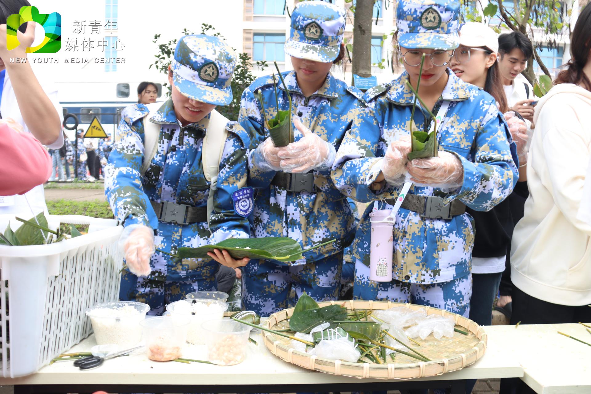 同学们体验包粽子