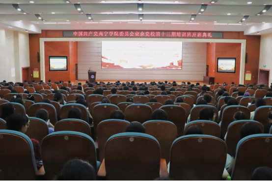 青春逢盛世,奋斗正当时。为深入学习宣传贯彻党的二十大精神,进一步提高新时代青年的政治思想觉悟和综合素养,吸引优秀的青年团员、教师积极向党组织靠拢,2023年5月25日晚上7点,中国共产党南宁学院委员会业余党校第十三期(总第47期)培训班开班典礼在图书馆报告厅举行。校党委副书记韦粤桂、培训班讲师、各二级学院分管学生工作党委(党总支)书记(副书记)、组织部有关同志、专职组织员、学生党支部书记和培训班的全体学员参加了典礼。开班典礼由智能制造学院党委书记陶兴华主持。