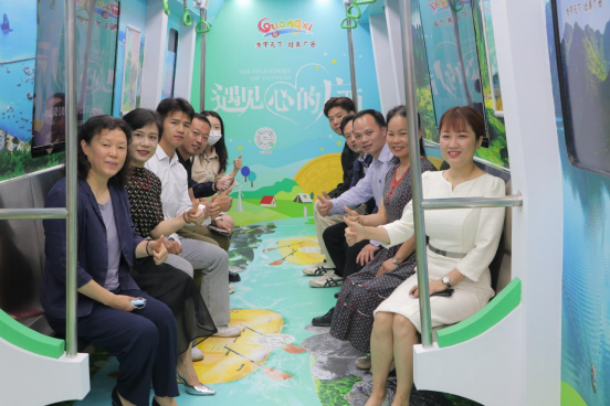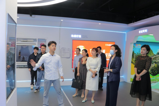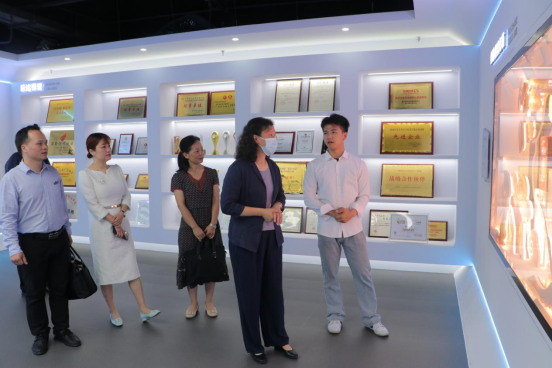 广西乐达传媒有限公司总经理王明惠办公室主任蒋芙蓉销售副总经理卢嫚嫚等企业领导陪同曹书记一行参观了乐达传媒集团总部并介绍了集团概况、企业荣誉、合作项目及发展方向等内容,充分展示了公司的企业文化与实力。