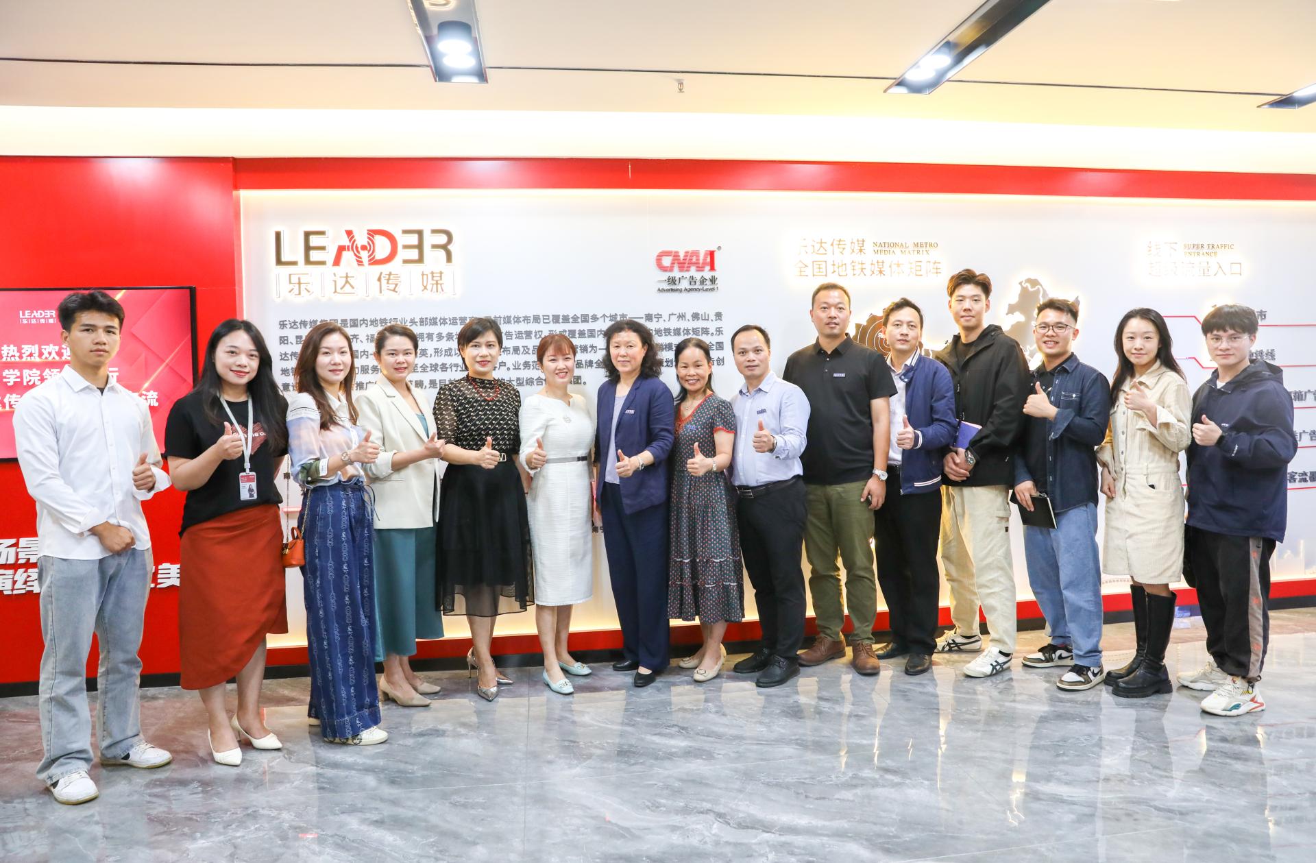 5月24日上午,学校纪委书记曹文军,艺术与设计学院院长杨小凤,副院长蓝志军、徐党卿等一行9人到广西乐达传媒有限公司开展访企拓岗暨专业调研考察调研行业发展趋势、了解企业人才需求、洽谈校企合作