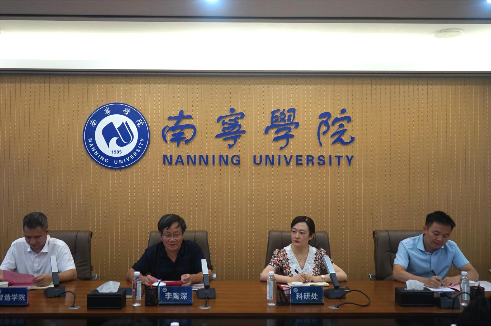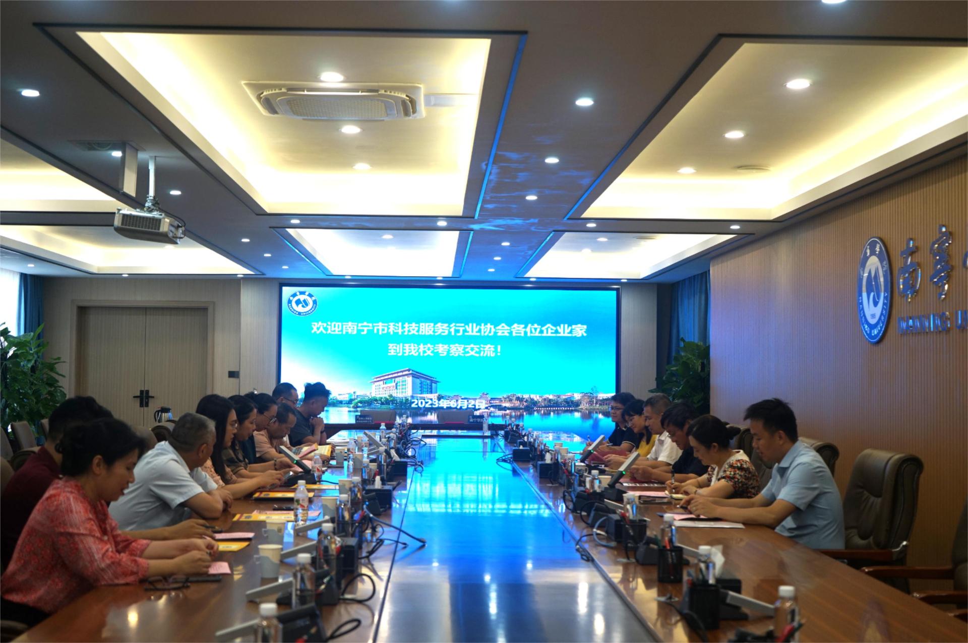 参观结束后,双方在行政楼400会议室开展了座谈交流,座谈会由张艳雯处长主持。李陶深副校长对南宁市科技服务行业协会企业家的到来表示热烈的欢迎,介绍了南宁学院的基本情况,重点就我校科研发展、硕士点培育建设、人才培养等方面进行了详细介绍,希望校企双方在高层次人才队伍、科技合作、学生就业等方面开展广泛合作。南宁市科航金桥创业咨询有限公司总经理凌子茵表示,双方加强校企合作、促进科技成果转化,充分发挥校企双方优势、深化合作,到达合作共赢。在座谈会上,企业家们在科研项目申报、科技成果转化、科技咨询服务、大学生创业就业等方面的交流与合作提出了意见建议。南宁高新区人才交流中心副主任李自然,对人才引进和大学生在邕就业等方面的扶持政策进行了介绍,表示高新区人才交流中心将搭建平台、优化服务,欢迎南宁学院学生到高新区就业创业;学生工作处韦相晓副处长介绍了2023届毕业生情况,并积极向企业推介。广西博士海意信息科技有限公司副总经理宁晴就科技成果转化、技术需求对接、智能制造研讨会、科技创新创业大赛等方面提出了合作意向。