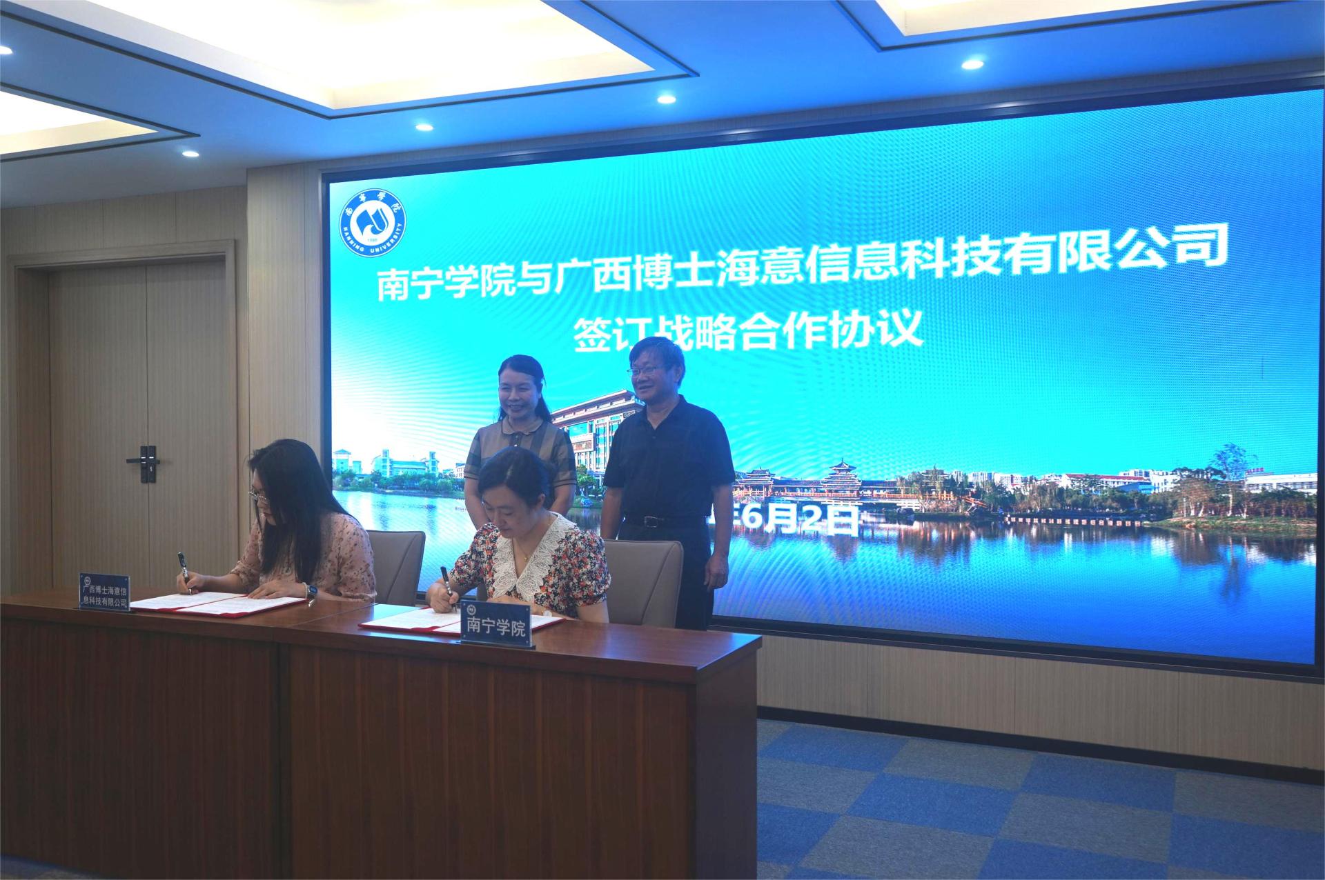 座谈会后,南宁学院与南宁市科航金桥创业咨询有限公司、广西博士海意信息科技有限公司现场签订了校企战略合作协议。双方表示要借此机会加强校企之间的交流互动,希望达成“优势互补、互惠互利、共同发展”的友好局面。(文/黄韵潼 姚锦金 图/黄韵潼)