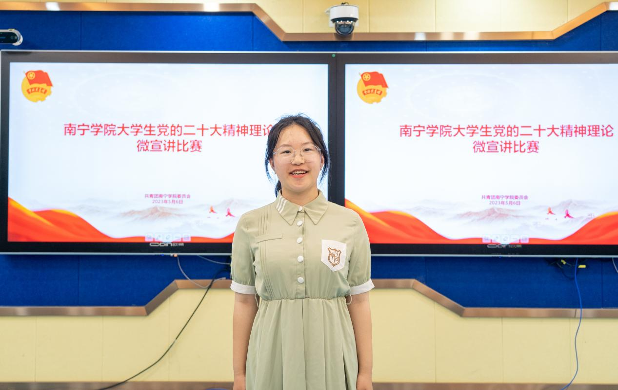 根据《自治区党委教育工委办公室自治区教育厅办公室关于开展广西高校大学生党的二十大精神理论微宣讲比赛的通知》(桂教工委办〔2023〕59号)文件内容,为引导全区高校大学生学思践悟党的二十大精神,深刻领悟“两个确立”的决定性意义,增强“四个意识”,坚定“四个自信”,坚决做到“两个维护”,推动党的创新理论走进青年、深入人心,南宁学院开展大学生党的二十大精神理论微宣讲比赛。