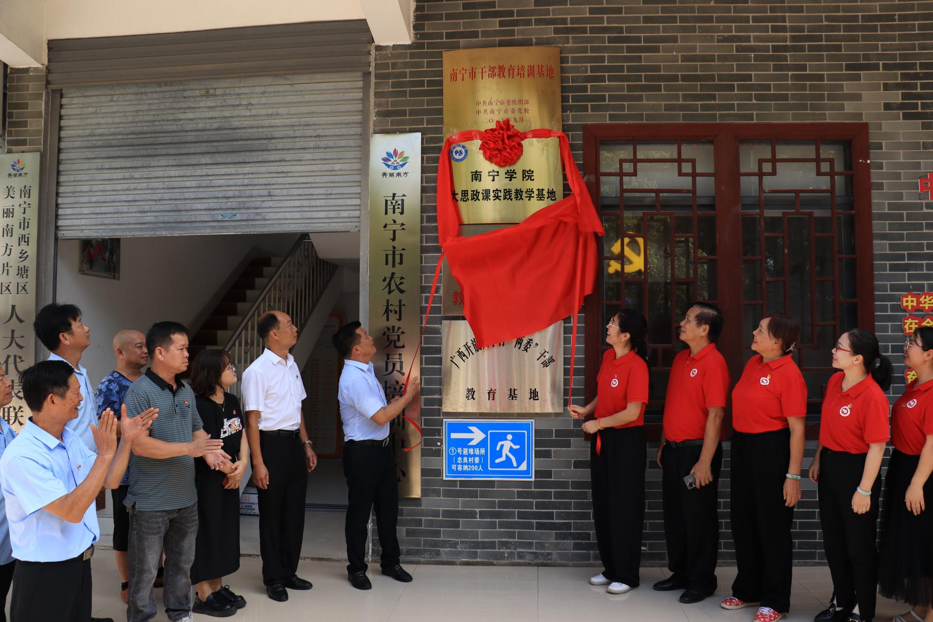为深入学习贯彻落实党的二十大精神,贯彻习近平总书记关于“大思政课”建设的重要指示精神,贯彻落实习近平总书记对广西“五个更大”重要要求、视察广西“4.27”重要讲话和对广西工作系列重要指示精神,紧抓新时代壮美广西建设契机,加强校地合作融合,不断优化思政育人的“理论+实践”创新模式,推动新时代的思想政治教育工作再上新台阶。马克思主义学院与南宁市西乡塘区石埠街道忠良村合作共建南宁学院“大思政课”实践教学基地。7月1日上午,马克思主义学院党支部组织全体党员教师赴忠良村举行“大思政课”实践教学基地揭牌仪式暨“七一”主题党日活动。