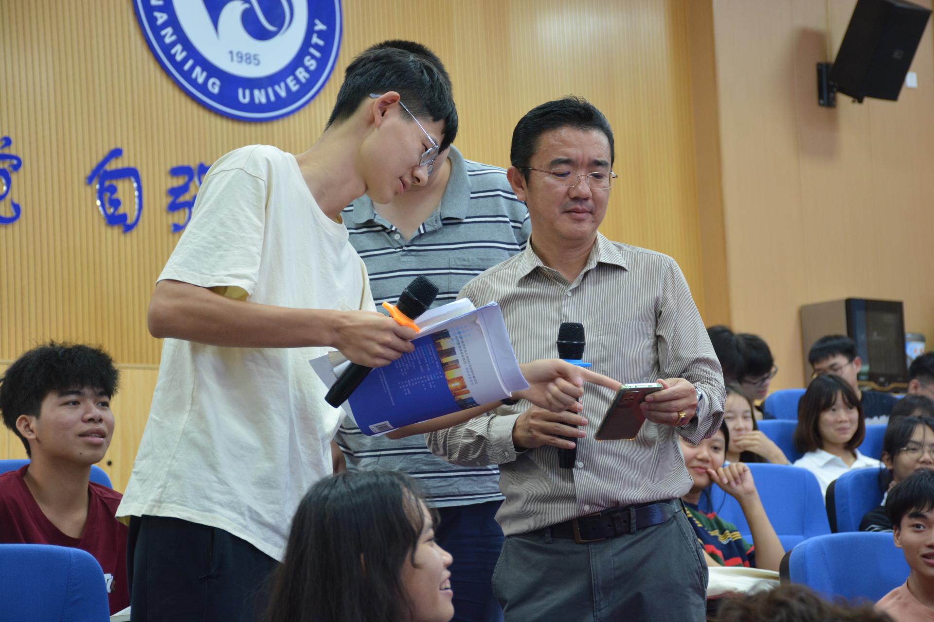 6月27日上午,南宁学院发展规划与合作交流处主办国际学术讲座,由广西中国-东盟综合交通国际联合重点实验室、交通运输学院承办,首次邀请外籍专家做学术报告。会议邀请Boonsub Panichakarn博士在敷文园A108报告厅全程用英文做了以“Logistics Connectivity—物流互联”为主题的报告。Boonsub Panichakarn博士通过一组组生动的图片展示、精彩的数据分析,从物流与供应链的发展演变、物流可持续发展、数字化供应链框架、全球(特别是北部湾经济圈)主要国家和地区物流绩效指数、中国-东盟物流合作与“一带一路”倡议、中国-东盟物流互联互通建设、中(广西)泰物流与供应链合作研究方向等方面进行了研讨和报告。该报告学术视野广阔、内容丰富,老师们和同学们收获颇丰。在最后环节,Boonsub Panichakarn博士与师生进行了亲切友好的互动,并详细地解答学生提出的问题。此次报告会由交通运输学院副院长庞彦知主持,全校百名师生聆听了讲座,南宁学院非常重视师生从国际化视角出发、运用多样化研究方法进行交通-物流之间的学科交叉创新研究,此次学术讲座为南宁学院师生提供国际新思路以及延伸国际科技合作与技术交流。