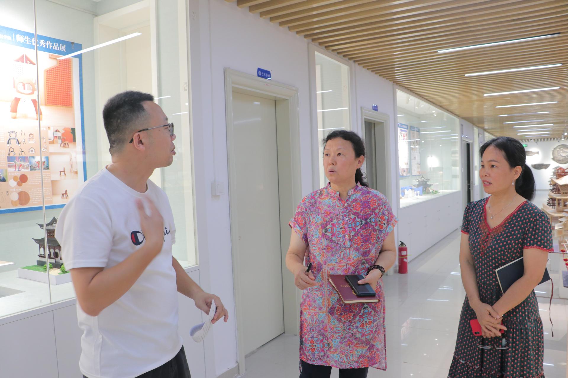 7月3日上午,南宁学院纪委书记曹文军到学院考察指导工作,在艺术与设计学院党委书记、院长杨小凤,党委副书记廖秀媛的陪同下首先参观了艺术展厅,考察学院办学成果