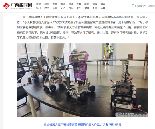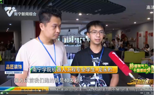 机器人工程是智能制造学院新建专业,参赛学生为该专业的大一大二学生。本次比赛成绩喜人,不仅充分体现了学校在应用型本科教学改革取得的成效,也极大地激发学生对机器人专业的兴趣和学习热情。比赛期间,学校师生还接受了广西新闻网、南宁电视台的采访。(智能制造学院供稿  图文/机器人教研室)