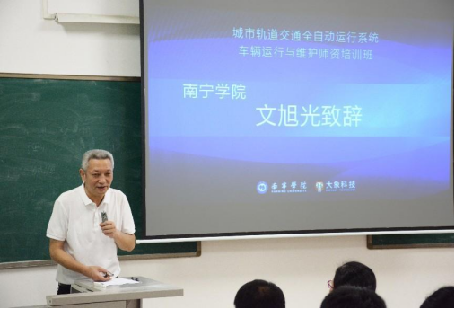 为贯彻落实《国务院办公厅关于深化高等学校创新创业教育改革的实施意见》(国办发〔2015〕36号)和《国务院办公厅关于深化产教融合的若干意见》(国办发〔2017〕95号)精神,深化产教融合、校企合作,教育部高等教育司组织有关企业支持高校共同开展产学合作协同育人项目。2023年8月28日,由中华人民共和国教育部高等教育司产学合作协同育人项目专家组审批通过,南宁学院交通运输学院及广西中国-东盟综合交通国际联合重点实验室(以下简称“重点实验室”)主办,北京大象科技有限公司(以下简称“大象科技”)承办的“城市轨道交通全自动运行系统车辆运行与维护资格培训班”在南宁学院南硅谷E举行开班仪式。来自广西交控智维科技发展有限公司、柳州铁道职业技术学院、南宁学院等企业、院校的70余名单位员工、高校教师参加培训。重点实验室主任文旭光,交通运输学院党委书记卢柳青,副院长范毅、庞彦知,大象科技副部长隋苗苗,南宁中车轨道交通装备有限公司副总经理瞿柏晖出席了培训班开班仪式。庞彦知副院长主持开班仪式。
