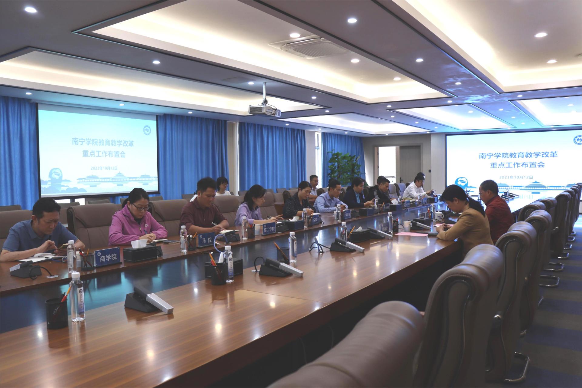 2023年10月12日下午,南宁学院在行政楼400会议室召开教育教学改革重点工作布置会,会议由陈雄章副校长主持,教务处处长,各学院院长、分管教学副院长、各教育教学重点项目项目负责人参加会议。
