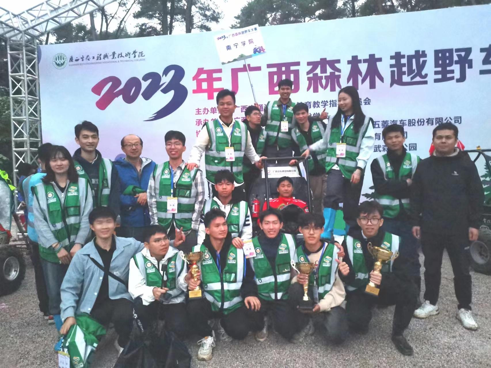 11月12日,广西森林越野车大赛在广西生态工程职业技术学院举行,来自区内各高校的多支队伍近500人参赛,南宁学院有邻车队代表学校出战并获本科组总成绩一等奖、单圈计时一等奖,斩获本科组总成绩冠军。