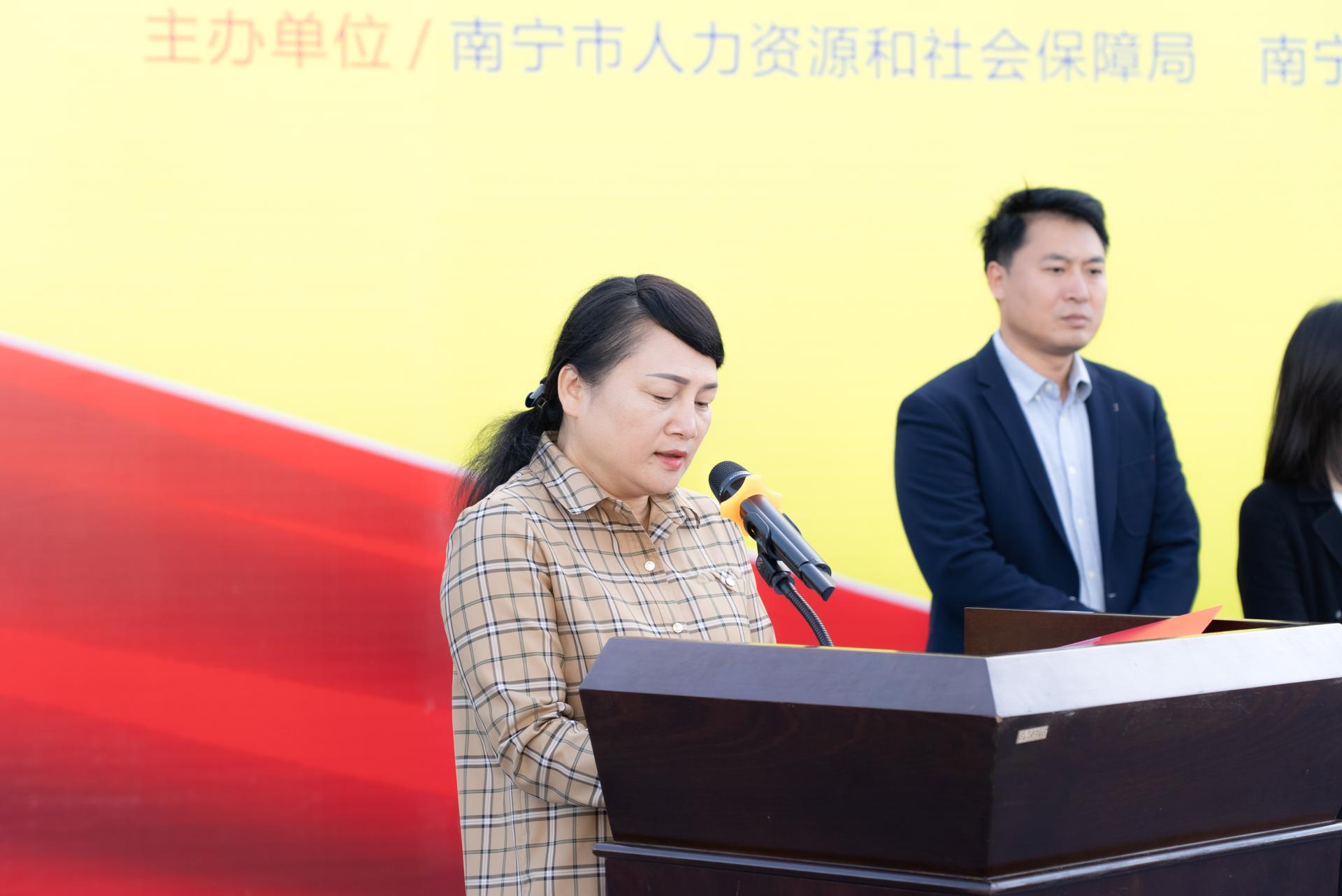 南宁学院党委副书记、副校长韦粤桂主持招聘会