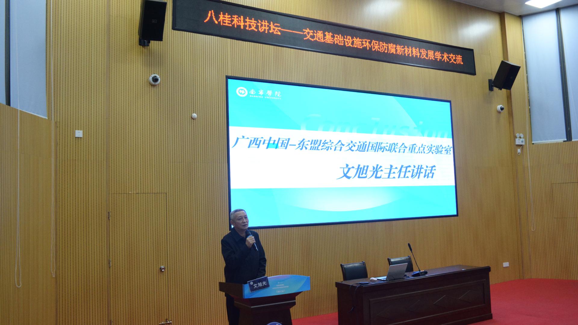 11月16日,由广西壮族自治区科学技术协会指导,南宁学院科协主办,四川尚博特科技有限公司、广西新材料技术工程院、中交一公局第四工程有限公司、广西库博环保科技有限公司协办的“八桂科技讲坛”——交通基础设施环保防腐新材料发展学术交流会在南宁学院举行。